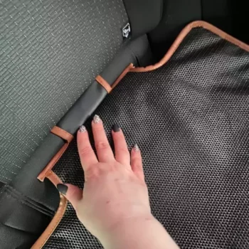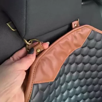 This seat protector attaches securely to the seat with durable metal hooks and installs easily in less than a minute.